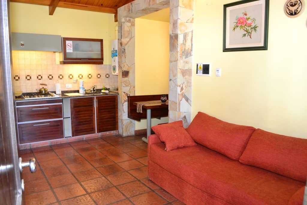 Cocina y Estar comedor: Cálido y acogedor bow window desayunador, con vista al parque y calefacción. Diván con dos camas una plaza. Ventilador de techo.